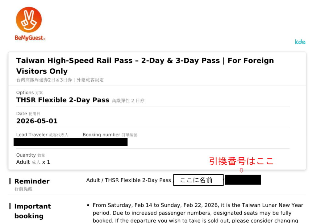 これをまずkkdayやagoda, 高鐵の公式HPなどで購入します。すると、どこに書いてあるのか分かりにくい引換番号が送られてきます。ということでここからの引換方法を説明します。